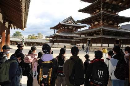 法隆寺を見学しています。