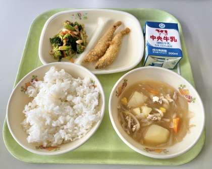 【ごはん、牛乳、ししゃもフライ、ブロッコリーのおかかあえ、道産子汁】でした。