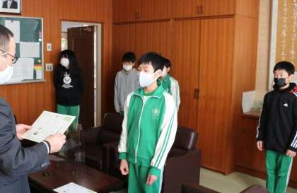 2月18日、いなほ賞の表彰がありました。6年生8名が校長室に訪れ、表彰を受けました。各自の頑張っていることを紹介されると、うれしそうな表情を見せていました。