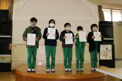 令和4年度の前期児童会役員の認証が行われました。名前を呼ばれた児童は壇上に上がり、一人ずつ認証状を受け取りました。その時に、自分の決意を述べる姿も見られました。