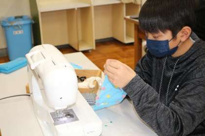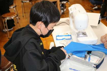 6年生は、ミシンでの裁縫を行っています。なかなかうまくいかないこともあり、試行錯誤の連続です。しかし、表情は真剣そのもの。出来上がったものをうれしそうに見せてくれる子もいました。