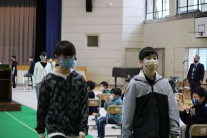 卒業式の予行練習が行われました。本番同様の雰囲気の中、動作の細かい部分まで気を付けている様子を感じました。18日の卒業式が楽しみです。