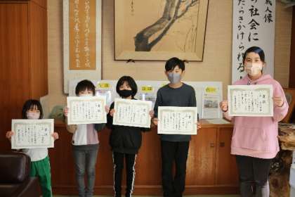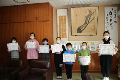 いなほ賞の表彰、読書感想画の表彰などが行われました。賞状を受け取るときの表情はどの児童も笑顔に満ちていました。これからの励みにもなりそうです。