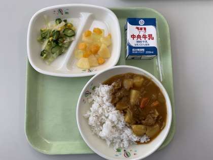 カレーライス ブロッコリーサラダ フルーツポンチ