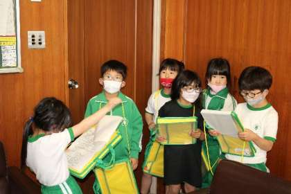 2年生が1年生に学校案内をしました。グループに分かれ、2年生が学校の様々な個所の説明をしていました。職員室や校長室に入るときは、大きな声で挨拶もできました。1年生も楽しそうな表情を見せていました。