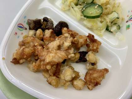 今日の「レバーと大豆の甘辛煮」では、でんぷんをつけて揚げることで、匂いと食感を和らげ、甘辛い味付けで食べやすくしました。