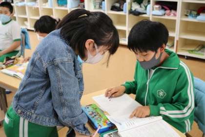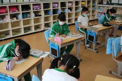 4年生は自分の好きな本について紹介する学習をしています。図書室で本を選び、内容などについてまとめています。本を選ぶとき、稲武のことをもっと知りたいからという理由で、稲武に関する本を選んだ子もいました。