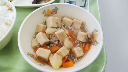 高野豆腐のうま煮は給食の定番献立で、今日もみんなよく食べていました。
