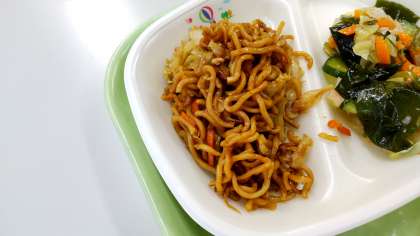 米粉パン 焼きそば 海藻サラダ ワンタンスープ
