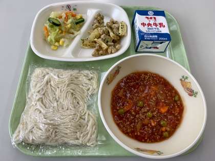 豊田ソフトめん トマトソースかけ 青のりポテトビーンズ かんきつサラダ