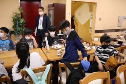 清水坂で昼食です。全員完食です。清水寺でセミを探しました。