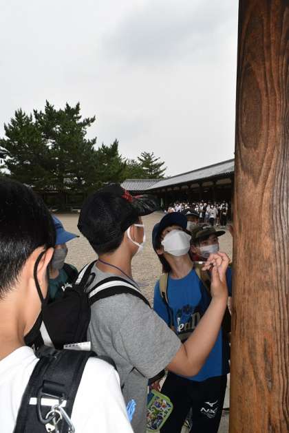 法隆寺に行きました。日本最古の木造建造物を見ました。柱の様子にも興味をもちました。