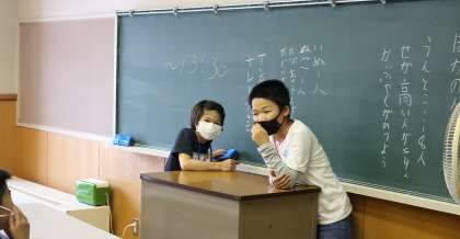 各班に分かれて、スタンツの話し合いと練習をしました。