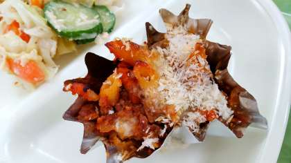 今日のミートグラタンは一つ一つ手作りしました。