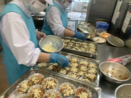 チーズとパン粉でこんがり焼き上げました。美味しく食べて欲しいです。