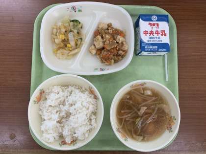 麦ごはん マーボー豆腐 中華風酢の物 中華スープ