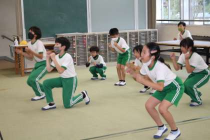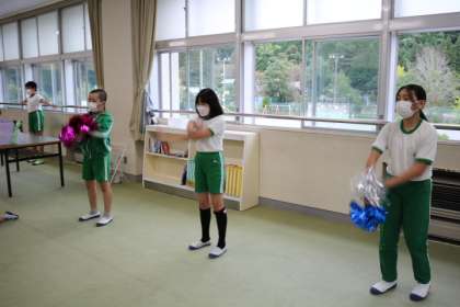 放課の時間には、高学年の呼びかけで応援合戦の練習が行われています。