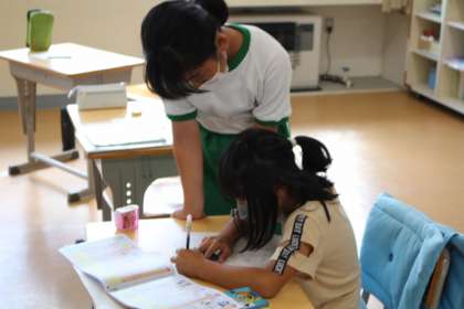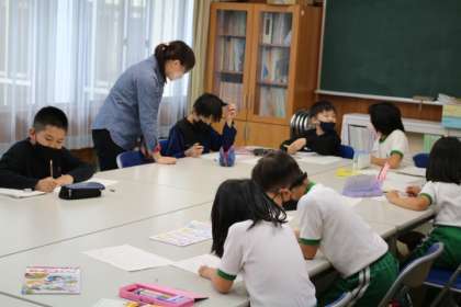 業間の時間をつかって、なかよし班での学習をしています。