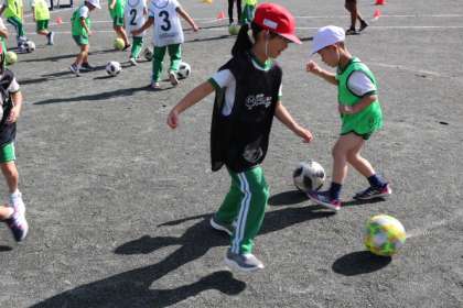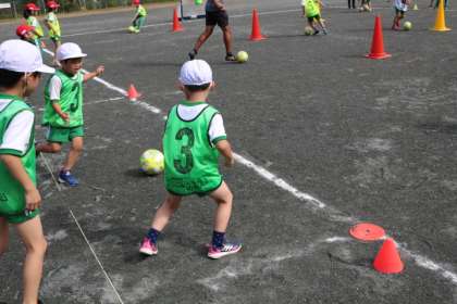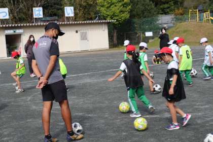 2名の指導者から、ボールタッチ、ドリブルなどを教えていただきました。