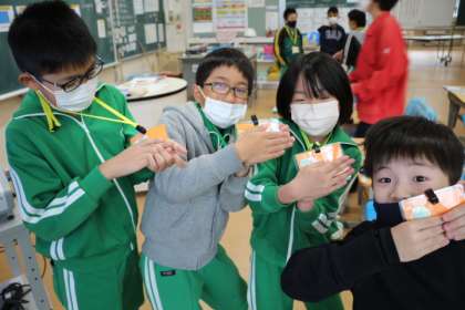じゃんけんゲームの中で、形(三角や四角など)の言い方を覚えました。
