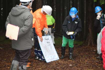 森林課の方や出前隊の方々に森づくりや間伐の仕方などを教わりました。