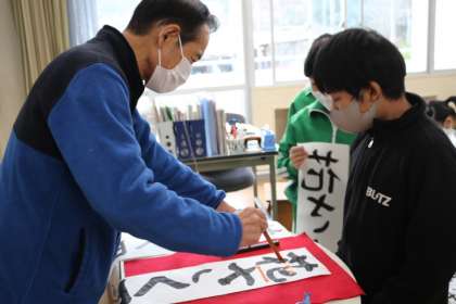 12月5日は、豊田市書道連盟の西山先生が来校され、細かく指導をしてくださいました。