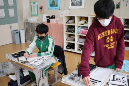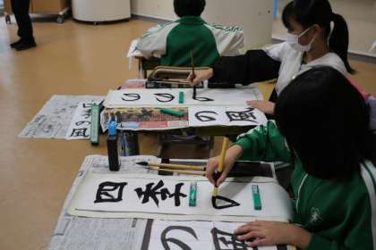 1月に行われる書初め大会に向けての練習が始まっています。