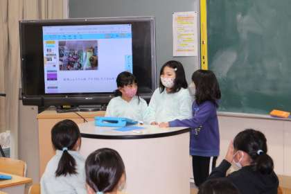 タブレットを使い、思い出に残ったところの写真を使ったり、クイズを作ったりしました。