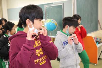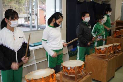 太鼓や笛の音が学校に響き渡りました。