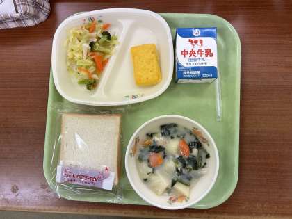 今日はほうれん草たっぷりのシチューにしました。まだまだ寒い日が続きますが、シチューで温まりましょう。