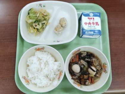 ごはん コーンしゅうまい バンバンジー 八宝菜