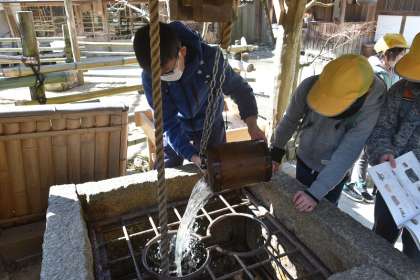 昔の暮らしの様子や道具などを見たり、つるべで井戸の水をくんだりすることもしました。