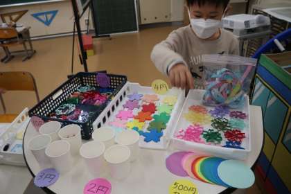 お買い物ごっこに招待され、教室へ行きました。