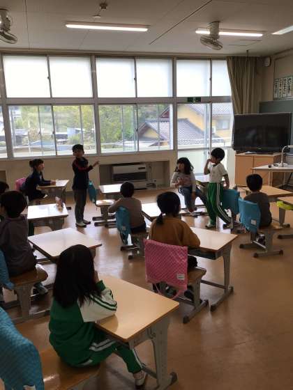 1年生に学校を案内してあげるために、学校内の様々な場所について話し合いました。2年生の子ども達は1年生に自信をもって学校を案内できるように頑張って準備しています。