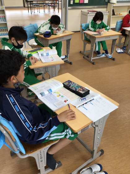 理科「天気と気温」で、運動場の気温を測ったり、時刻と気温のグラフからその関係性を考えたりしました。