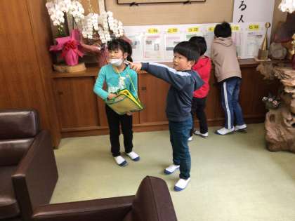 2年生の子ども達が1年生と手を繋ぎ、学校の様々な部屋を案内しました。2年生の子ども達は、各部屋について一生懸命1年生に説明しました。