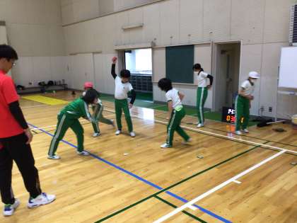 いろいろな体の使い方を学びました。投げたり、走ったり、跳んだりしました。体力テストの練習にもなりました。