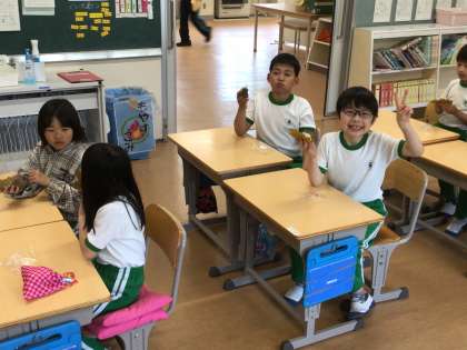 御菓子所まつ月さんから子ども達と職員に柏餅をいただきました。柏餅を食べる子ども達の笑顔がすてきでした。柏餅をいただいたまつ月さんに感謝をするとともに、子ども達はなぜこどもの日に柏餅を食べるのかを学ぶ機会にもなりました。