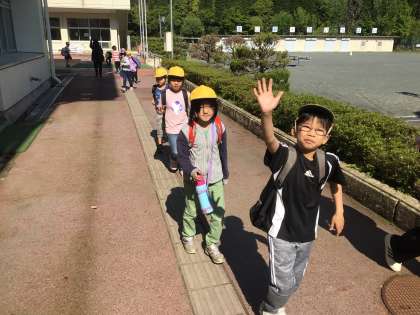 全校児童62名、欠席もなく全員元気に登校しました。子ども達は笑顔いっぱいにバスに乗り込み、ジブリパークに出発しました。