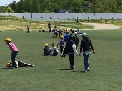 お弁当後の芝生広場にて