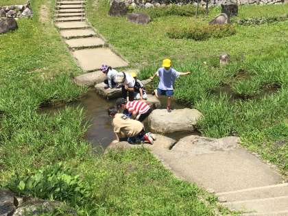 お弁当を食べた後、芝生広場で遊びました。鬼ごっこをしたり、小川の観察をしたり、みんなで楽しい時間を過ごすことができました。