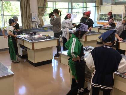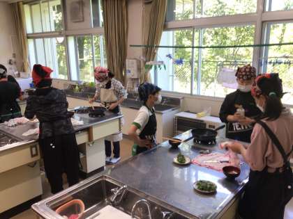家庭科の授業で調理実習をしました。朝食から健康な1日をスタートできるように、朝食で食べるほうれん草の玉子炒めを作りました。料理の手順を確認しながら、楽しく料理ができました。