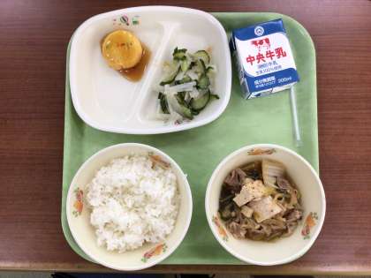 ごはん 卵と豆腐のしんじょ 酢の物 すき焼き風煮