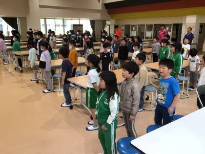 5月16日(火)、3年ぶりにどんぐり集会を実施することができました。今までは、コロナ禍で全校で集まることが難しかったですが、これからは感染対策をしつつ少しずつ全体での関わりを増やしていきたいと思います。今回は、全校で今月の歌を歌いました。
