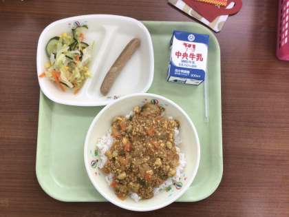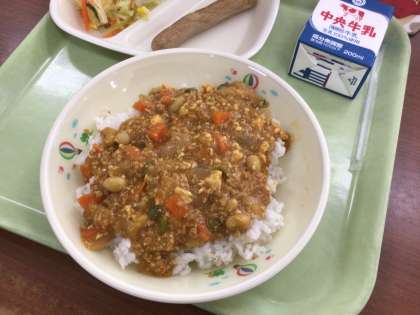 今日は豆腐を使ったふわふわキーマカレーです。大豆製品が苦手な子もカレーに入れれば美味しく食べることができます。