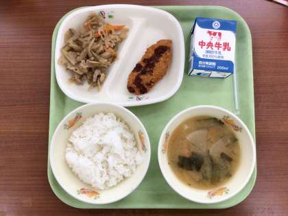 ごはん かつおフライ 五目きんぴら 生揚げのみそ汁