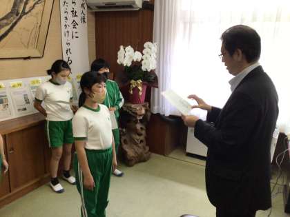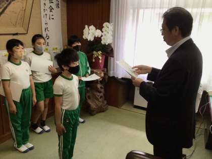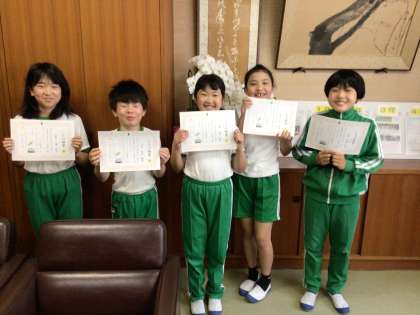 今年度初めて、5年生の子ども達にいなほ銀賞を渡しました。月例テストや委員会活動等を頑張った成果です。おめでとうございます。