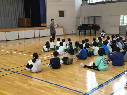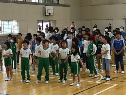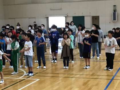 最後に全校で歌を歌いました。元気な歌声が体育室に響き渡りました。そして、子ども達の歌声から元気をもらいました。