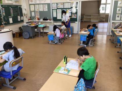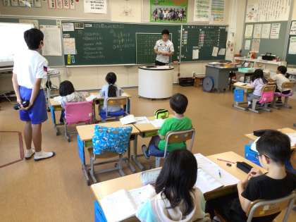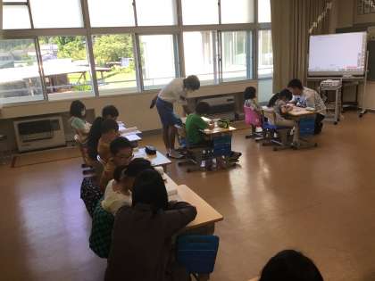 大きな数について学びました。職場体験にきていた2名の稲中生にわからない問題を教えてもらいました。