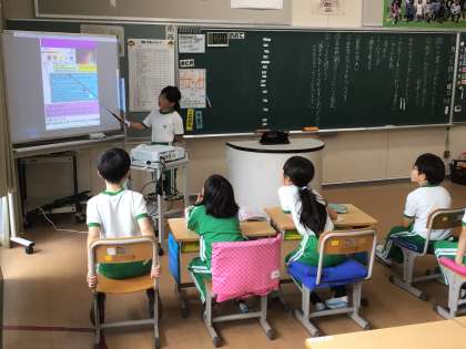 興味のあることについて、調べてレポートでまとめ、みんなの前で発表しました。